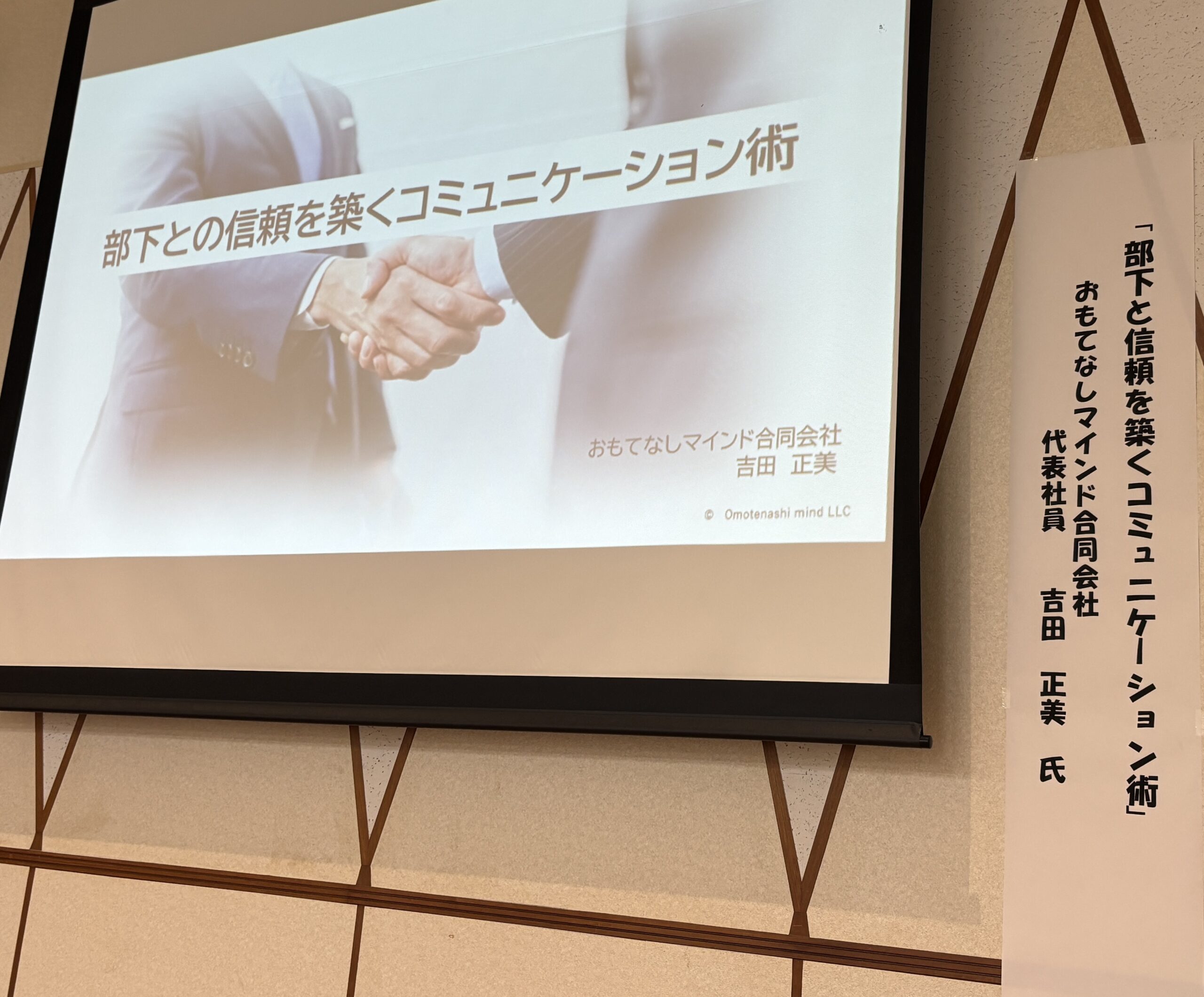 吉田正美のブログ 2025-09-27 お知らせ 管理職研修貝塚経済クラブ様にて「部下と信頼を築くコミュニケーション術」 2025-08-30 お知らせ ホスピタリティ研修セントラルクリニック世田谷様にて5度目の接遇研修 2025-08-03 カスタマーハラスメント研修関東電気保安協会様にてカスハラ研修 2025-08-03 お知らせ 教職員向けマナー新刊がAmazonからもご予約可能になりました 2025-07-06 お知らせ 教職員向けマナー新刊のご案内 2025-06-24 セミナー報告 管理職研修カスタマーハラスメント研修 2025-06-15 安全大会170名の安全大会 2025-05-20 セミナー報告トヨタ自動車様にて管理職研修 1 2 3 … 16 次へ »