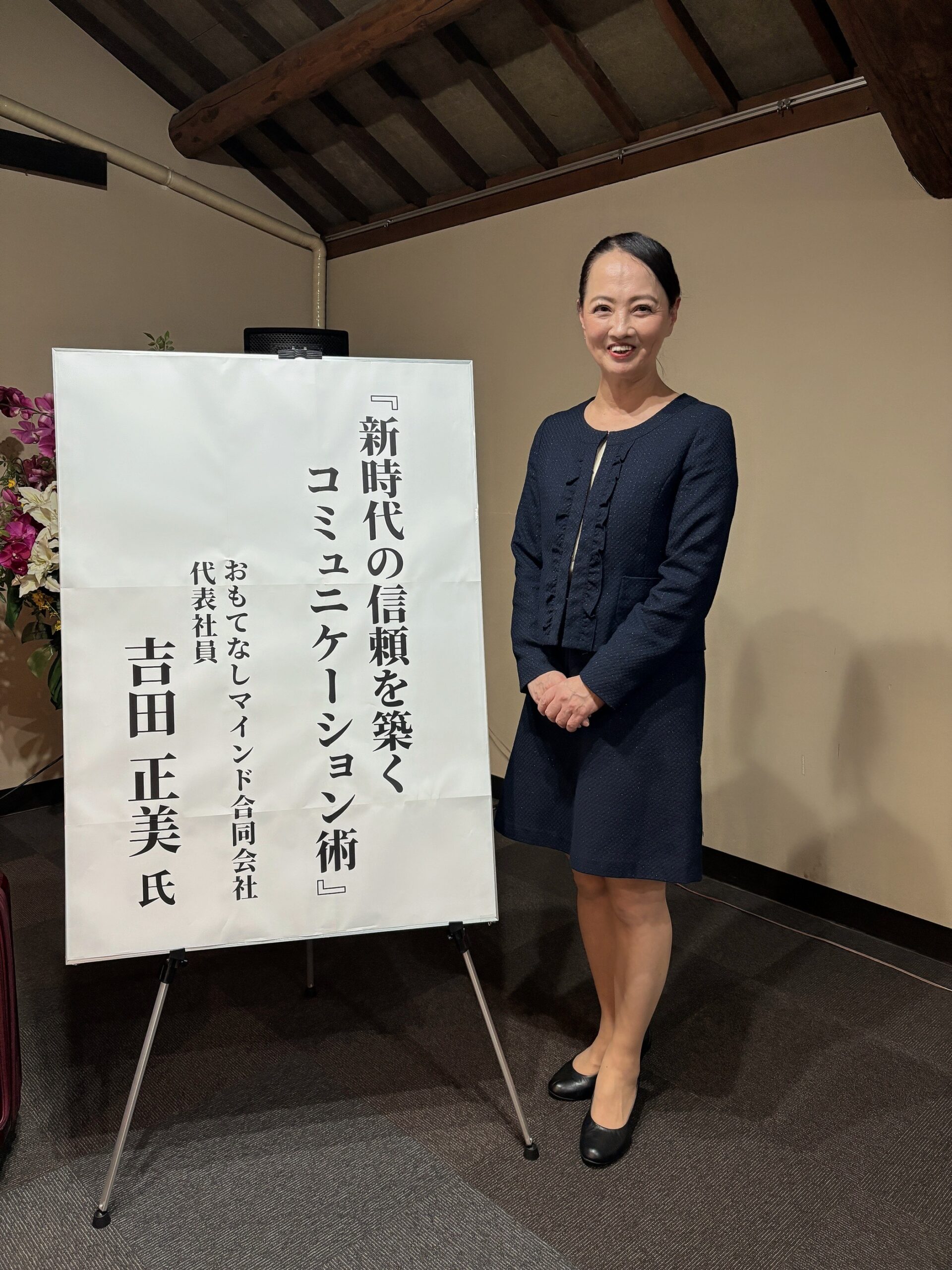 吉田正美のブログ 2025-12-20 お知らせはなさく生命保険株式会社にて「若手社員マナー研修」 2025-12-20 お知らせ 管理職研修小西酒造様にて講演「新時代の信頼を築くコミュニケーション術」 2025-10-22 セミナー報告 管理職研修西濃運輸労働組合様にて管理職研修 2025-09-27 お知らせ 管理職研修貝塚経済クラブ様にて「部下と信頼を築くコミュニケーション術」 2025-08-30 お知らせ ホスピタリティ研修セントラルクリニック世田谷様にて5度目の接遇研修 2025-08-03 カスタマーハラスメント研修関東電気保安協会様にてカスハラ研修 2025-08-03 お知らせ 教職員向けマナー新刊がAmazonからもご予約可能になりました 2025-07-06 お知らせ 教職員向けマナー新刊のご案内 1 2 3 … 16 次へ »